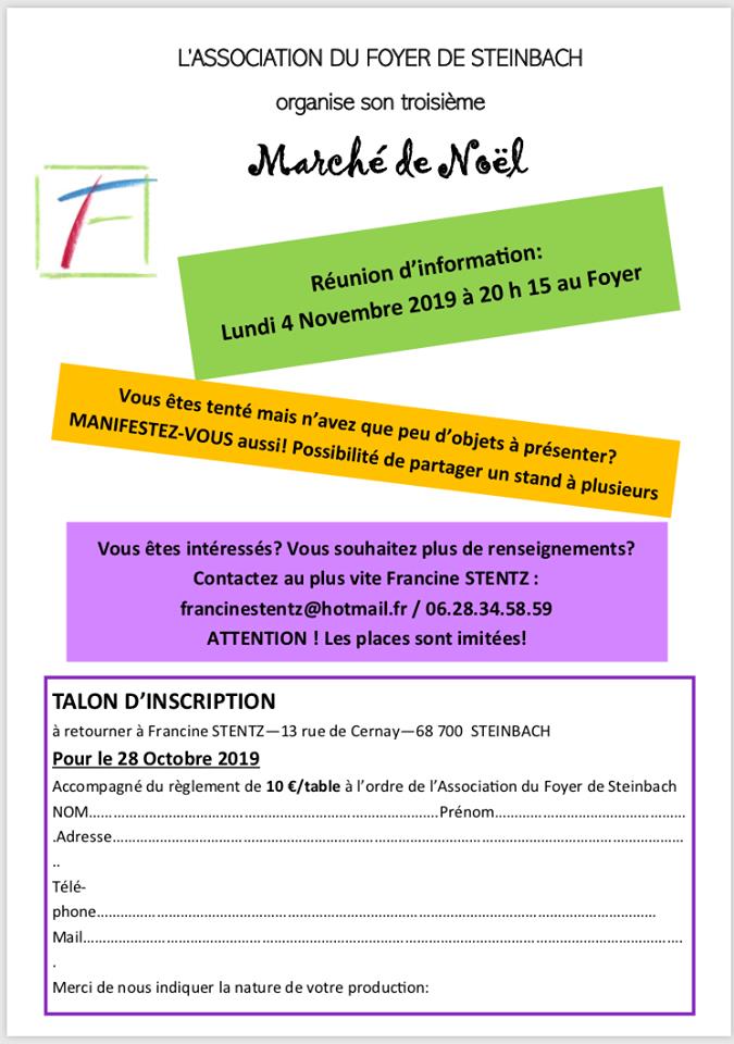 Le Foyer de STEINBACH organise son 3ème marché de Noël dimanche 1er Décembre de 10h à 18h ! 🎅🤶🎄