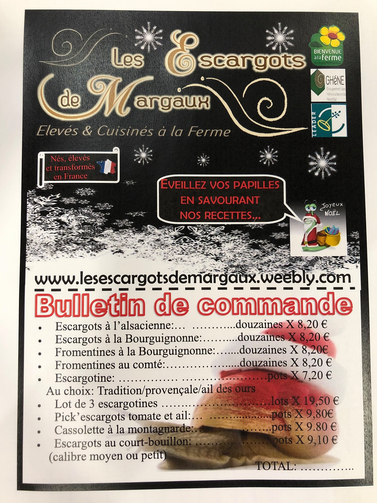 Pour les fêtes de fin d’année, le STEIN vous propose sa commande d’escargots frais ou surgelés. Produits par « les escargots de Margaux » à Largitzen (68), nés, élevés et transformés en France.