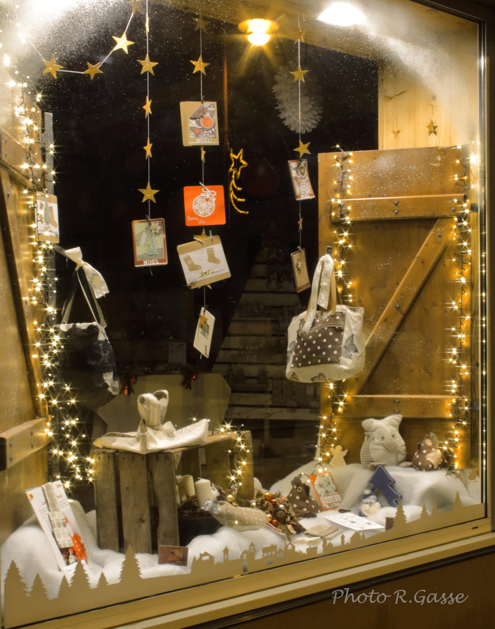 Au programme de cette vitrine : des cartes, des sacs, des petites trousses, des sacs à tarte et des décorations de Noël, entièrement réalisées par Nathalie Walter, créatrice.