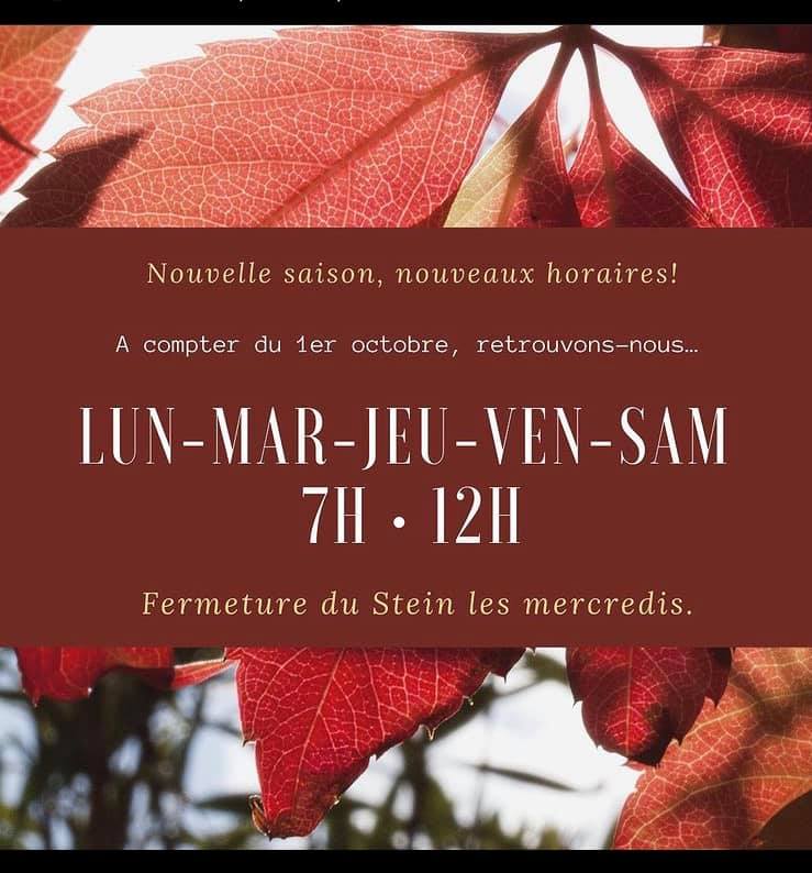 05/10/21 : NOUVEAUX HORAIRES DU STEIN